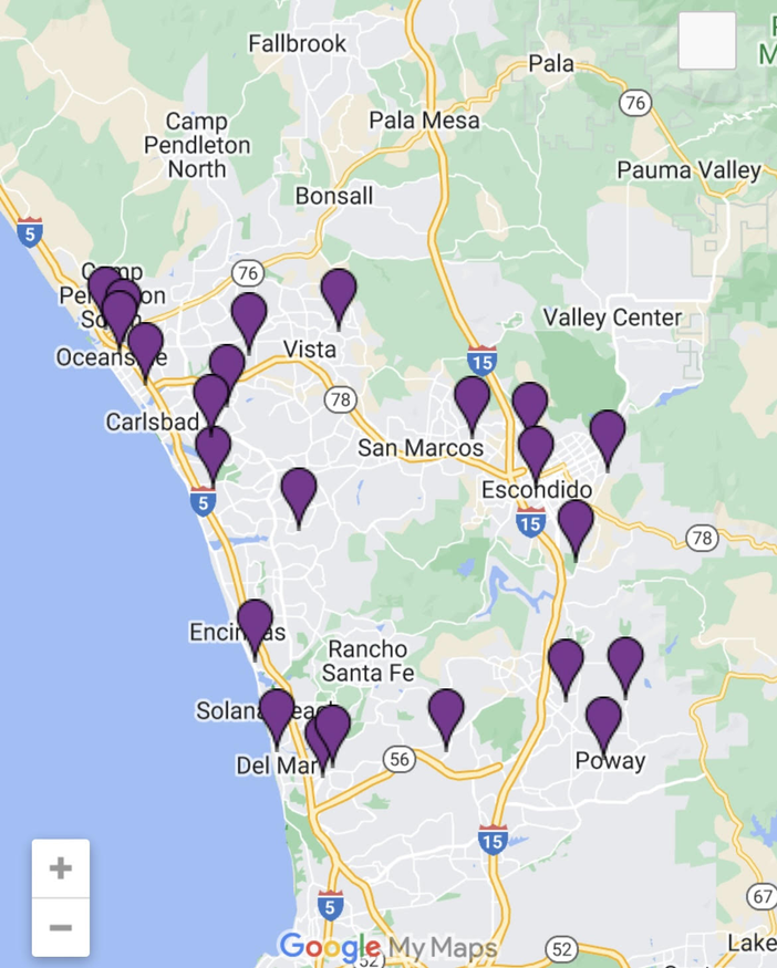 Escondido, San Marcos, Valley Center, Vista, Carlsbad, Encinitas, Solana Beach, Del Mar, Rancho Santa Fe, Oceanside, Fallbrook, Bonsall, Rancho Bernardo, 4S Ranch, Poway, Carmel Valley, Rancho Penasquitos and surrounding areas.